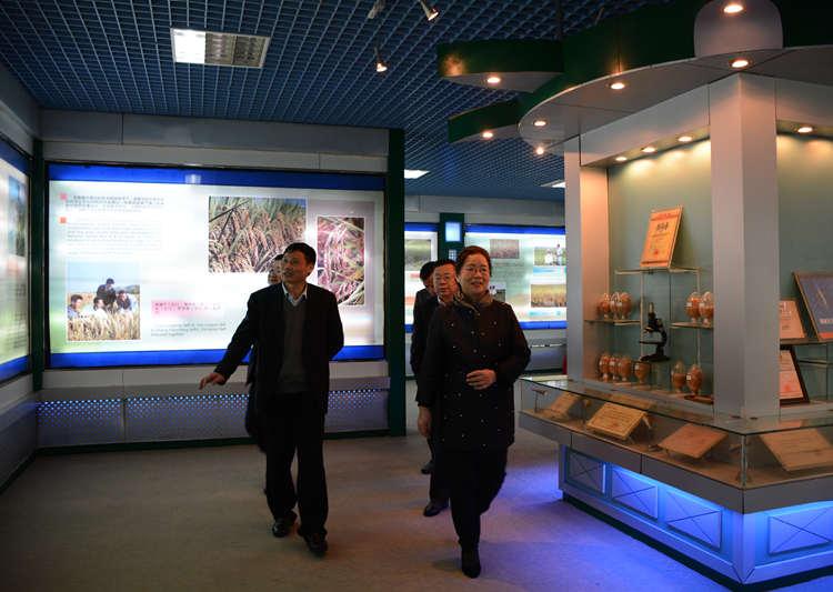 在院长王聪田、副书记邬国盛等院领导的陪同下视察了校园基础设施建设,参观了杂交水稻展览馆,随后来到多功能厅作简单的会议报告。